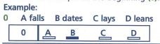 For questions 1-8, read the text below and decide which answer (A,B,C or D) best fits each gap. There is an example at the beginning (0).